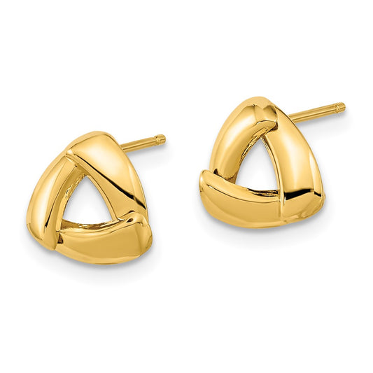 The 14K Yellow Gold Polished Textured Love Knot Earrings are a testament to timeless elegance. Crafted from 14K gold, these earrings feature a love knot design, symbolizing unity and everlasting bonds. Each earring measures 9.5mm in length and 10mm in width, with a hollow construction that offers lightweight comfort. Finished...