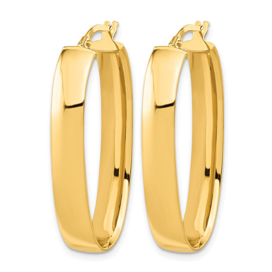 The 14K Yellow Gold Polished Oval Hoop Earrings are a perfect addition to your collection. Crafted from high-quality 14K gold, these earrings shine with a polished finish. Each hoop is 40 mm long and 20 mm wide, creating an elegant statement. The hoops are lightweight due to the hollow tubing...