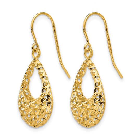 Experience timeless elegance with our 14K Yellow Gold D/C Shepherd Hook Earrings. Crafted from polished 14K gold, these earrings measure 28 mm in length and 12 mm in width, offering a graceful drop and dangle style. The warm yellow hue of the gold pairs beautifully with your favorite outfit, making...