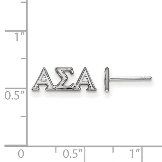 Show off your sisterhood with Sterling Silver Rhodium-Plated Logoart Alpha Sigma Sorority Greek Letters Extra Small Post Earrings. These small earrings are crafted from high-quality sterling silver and feature a polished finish that adds a sleek shine. The laser-cut design displays the Alpha Sigma Greek letters clearly, making them a...