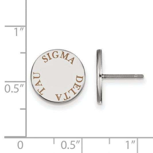 The Sterling Silver Rhodium-Plated Logoart Sigma Delta Tau Sorority Text Enamel Post Earrings are a must-have for sorority members. Crafted from 925 sterling silver, these earrings shine with a polished finish and measure 12 mm in diameter. They feature vibrant enamel accents in Cafe Au Lait and Blue, adding a...