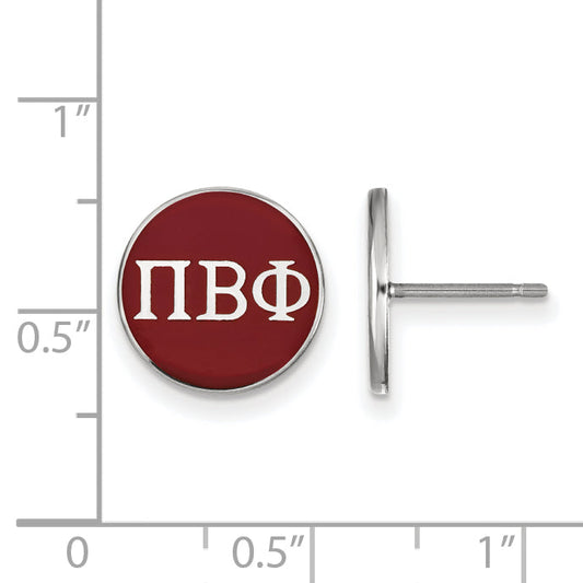 The Sterling Silver Rhodium-Plated Logoart Pi Beta Phi Sorority Greek Letters Enamel Post Earrings are a perfect accessory for any proud sister. Crafted from 925 sterling silver, these small, polished earrings feature bright enamel in wine and blue, making them stand out nicely. The laser-cut design ensures a clean look,...