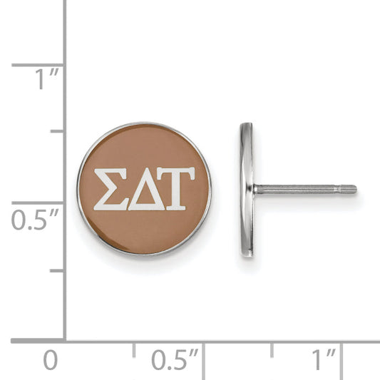 The Sterling Silver Rhodium-Plated Logoart Sigma Delta Tau Sorority Greek Letters Enamel Post Earrings are a stylish way to show pride. Made of pure sterling silver, they are polished for a bright shine. The earrings measure 12 mm and fit comfortably. They feature bold Greek letters with a touch of...