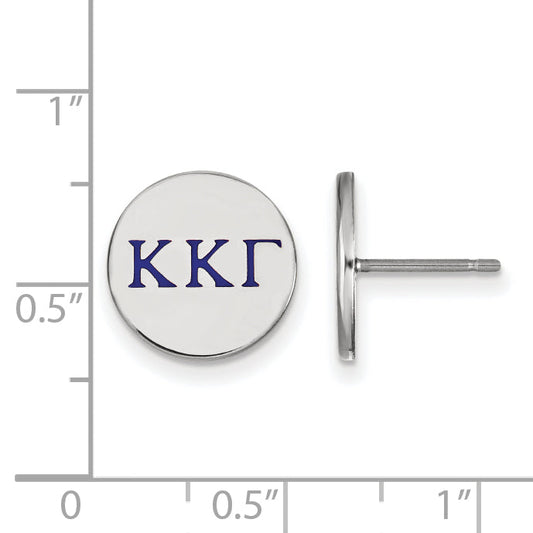 The Sterling Silver Rhodium-Plated Logoart Kappa Gamma Sorority Greek Letters Color Enamel Post Earrings offer a stylish way to show your pride. Made from pure sterling silver with a polished finish, these earrings feature the iconic blue and white enamel accents. Each earring measures 12 mm, making them just the...