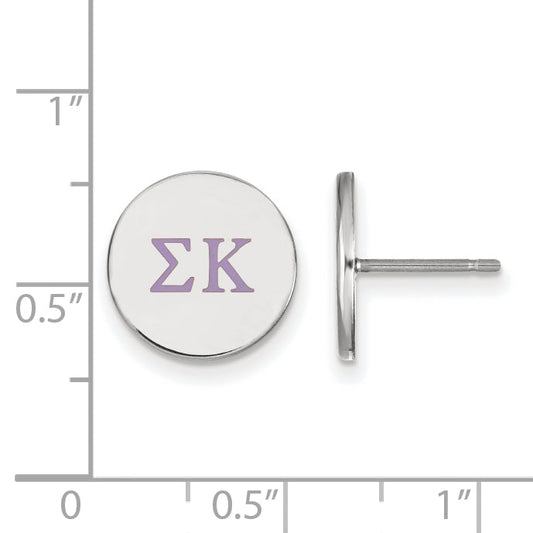 The Sterling Silver Rhodium-Plated LogoArt Sigma Kappa Greek Letters Earrings are a great way for women to showcase their pride. Crafted from high-quality sterling silver and coated with shiny rhodium, these earrings offer durability and a sleek look. Each piece measures 12 mm, making them small yet noticeable. The purple...