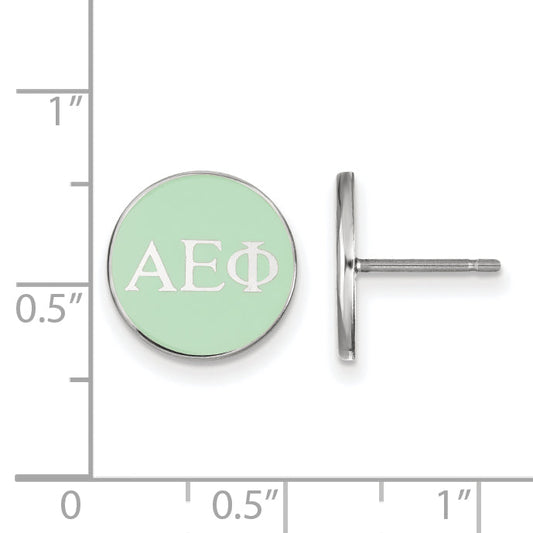 Show off your sorority pride with the Sterling Silver Rhodium-Plated Logoart Alpha Epsilon Phi Greek Letters Post Earrings. These stylish earrings measure 12 mm and feature vibrant green enamel accents on shiny sterling silver. The laser-cut design ensures a precise fit, and the rhodium plating adds a sleek, tarnish-resistant finish....