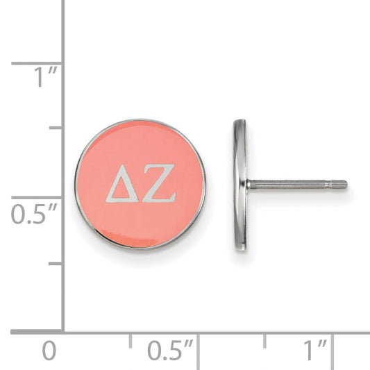 Show your pride with the Sterling Silver Rhodium-Plated Logoart Delta Zeta Sorority Greek Letters Post Earrings. Crafted from high-quality sterling silver, these earrings feature colorful enamel accents in pink and green that make the sorority logo stand out. The polished rhodium finish adds a bright shine, and their small size...