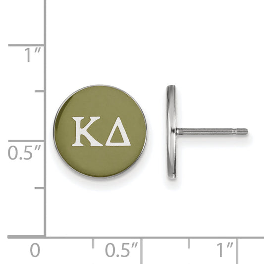 Celebrate your sisterhood with the Sterling Silver Rhodium-Plated Logoart Kappa Delta Sorority Greek Letters Color Enamel Post Earrings. These stylish earrings are made from high-quality 925 sterling silver and finished with a sleek rhodium plating for added shine and durability. The 12mm button-style earrings feature vibrant olive green enamel accents...