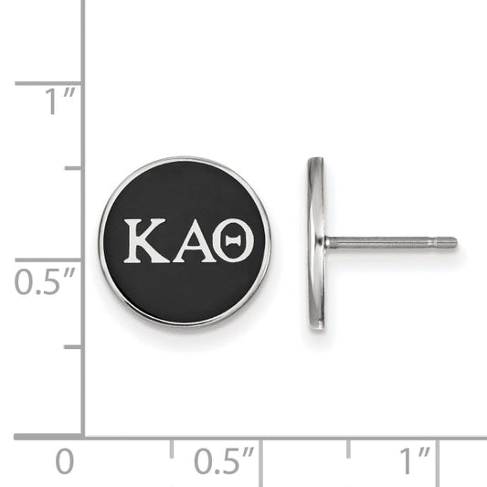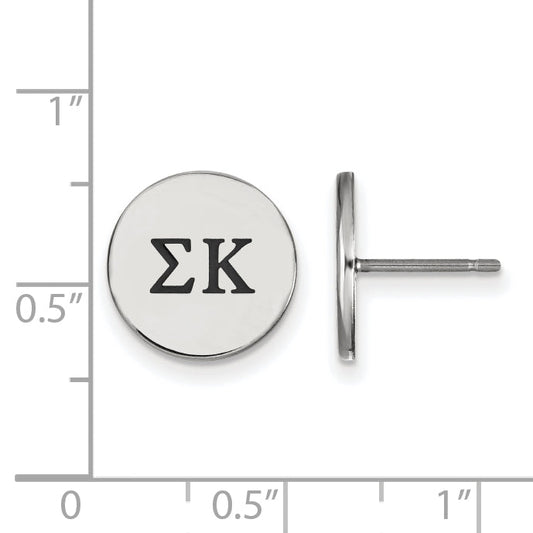 Show off your sorority pride with the Sterling Silver Rhodium-Plated Logoart Sigma Kappa Greek Letters Black Enamel Post Earrings. Crafted from high-quality sterling silver, these sleek earrings are polished to a shine and feature bold black enamel accents for a striking look. Measuring just 12 mm, they sit comfortably on...