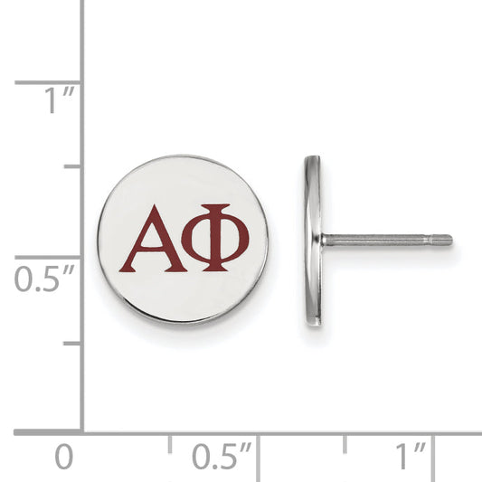 Show your pride with the Sterling Silver Rhodium-Plated Logoart Alpha Phi Sorority Greek Letters Earrings. Crafted from high-quality sterling silver, these earrings are polished to a sleek shine. The 12 mm button-style posts are easy to wear and stay secure with push back closures. Featuring bold Bordeaux enamel accents, they...