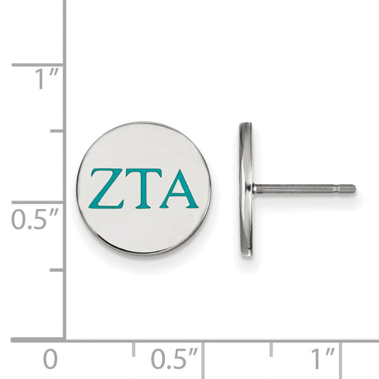 Show your pride with the Sterl Silver Rhodium-Plated Logoart Zeta Tau Alpha Sorority Logo Earrings. These small, 12 mm button earrings feature vivid blue and white enamel accents, making them stand out. Made with high-quality 925 sterling silver and a polished finish, they are durable and shiny. The rhodium plating...