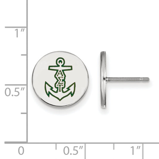 Celebrate your sisterhood with the LogoArt Alpha Sigma Tau Sorority Symbol Earrings. Crafted from pure sterling silver and plated with rhodium, these earrings shine brilliantly and resist tarnish. The small, 12 mm button design features vibrant green enamel accents that catch the eye. Perfect for daily wear, they are lightweight...