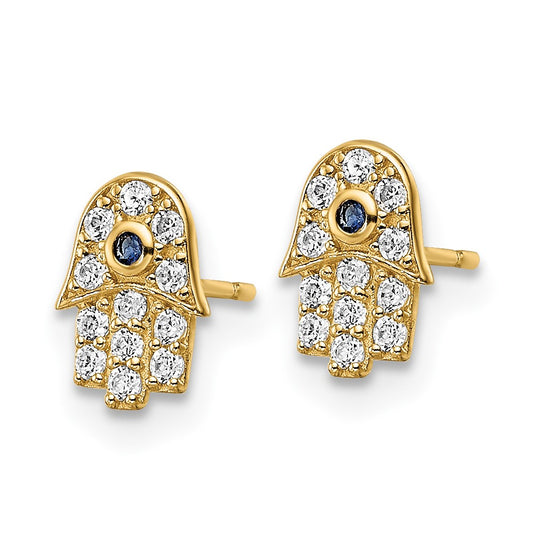 The 14K Yellow Gold Cz & Blue Glass Stone Hamsa Post Earrings make a bold yet elegant statement. Crafted from polished 14K gold, these earrings feature eye-catching blue glass stones and shimmering cubic zirconia, bringing a pop of color and sparkle. The Hamsa design adds a touch of charm and...