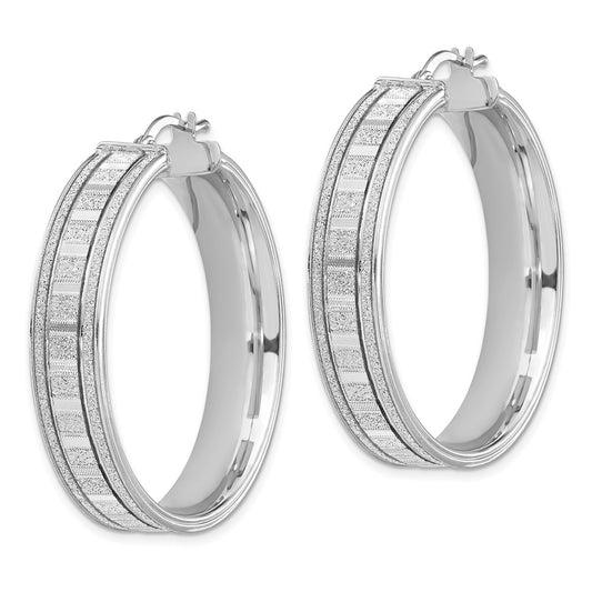 The Sterling Silver Rhodium-Plated Textured & Twisted Oval Hoop Earrings are a stunning addition to any jewelry collection. Crafted with precision, these earrings feature a polished finish and measure 25mm in length. Made from 925 sterling silver, they offer a shimmering silver tone, enhanced by rhodium plating for added brilliance....