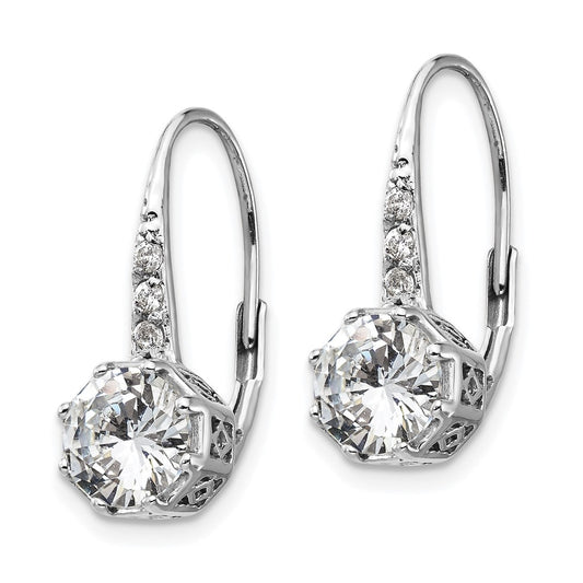 The Sterling Silver Cheryl M Rhodium-Plated Brilliant-Cut Lab Created Ruby and White CZ Leverback Earrings combine elegance and sparkle in one unique piece. Crafted from 925 sterling silver, they feature lab-created rubies and white cubic zirconia stones. Expertly polished and rhodium-plated, these earrings glisten with every move. The leverback closures...
