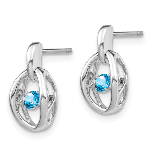 Embrace elegance with our Sterling Silver Rhodium Blue Topaz Birthstone Vibrant Earrings. Crafted from polished sterling silver, these earrings boast stunning Swiss Blue Topaz stones that make any outfit shine. Each earring features a round, 3 mm natural stone, totaling 0.2 carats. The rhodium plating adds a dazzling silver tone,...