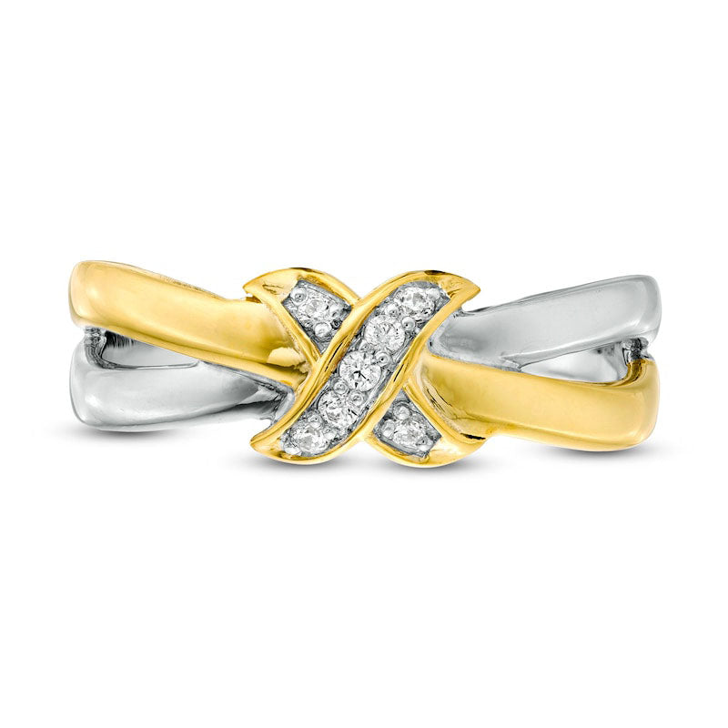 0.05 CT. T.W. Natural Diamond X" Engravable Crossover Split Shank Promise Ring in Sterling Silver and Solid 10K Yellow Gold (1 Line)"
