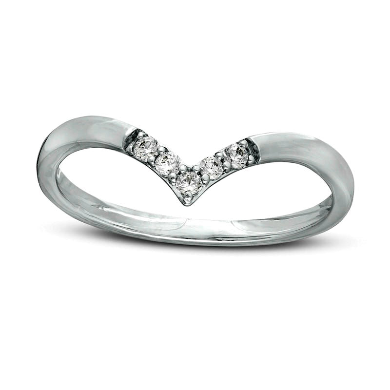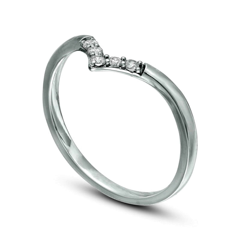 0.07 CT. T.W. Natural Diamond Chevron Ring in Solid 10K White Gold