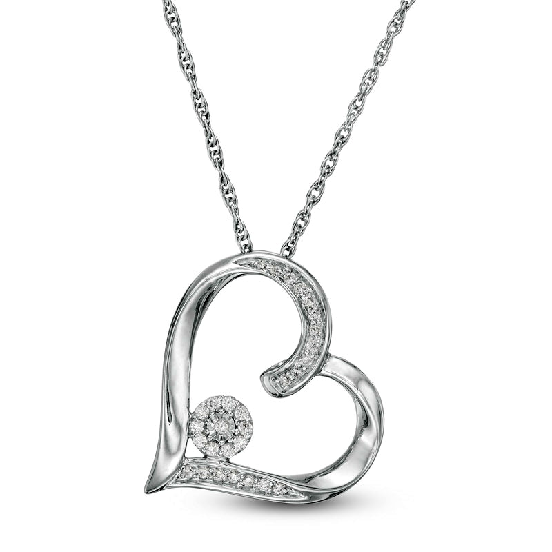0.1 CT. T.W. Composite Natural Diamond Tilted Heart Outline Pendant in Sterling Silver