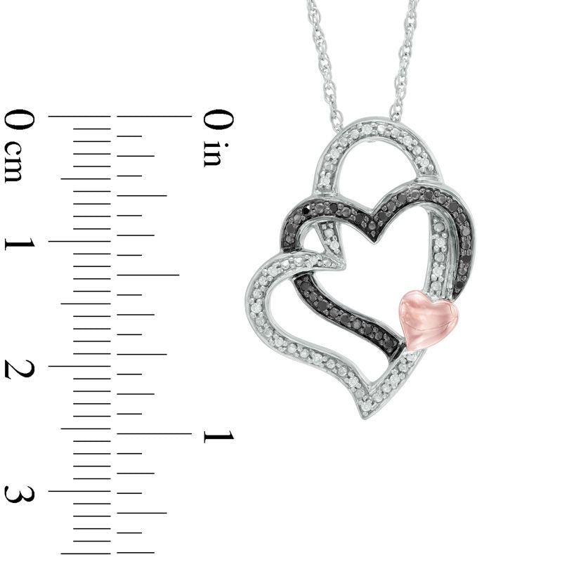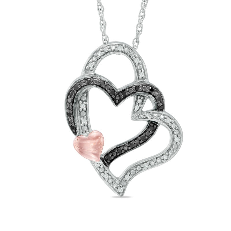 0.1 CT. T.W. Enhanced Black and White Natural Diamond Hearts Pendant in Sterling Silver and 10K Rose Gold Plate