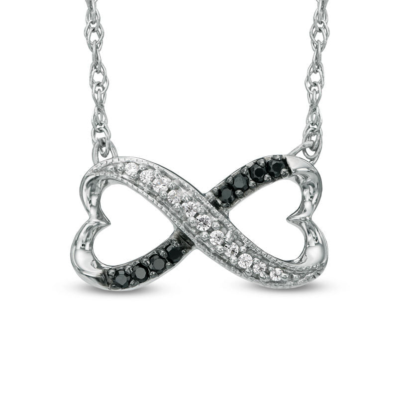 0.1 CT. T.W. Enhanced Black and White Natural Diamond Sideways Heart Infinity Pendant in Sterling Silver
