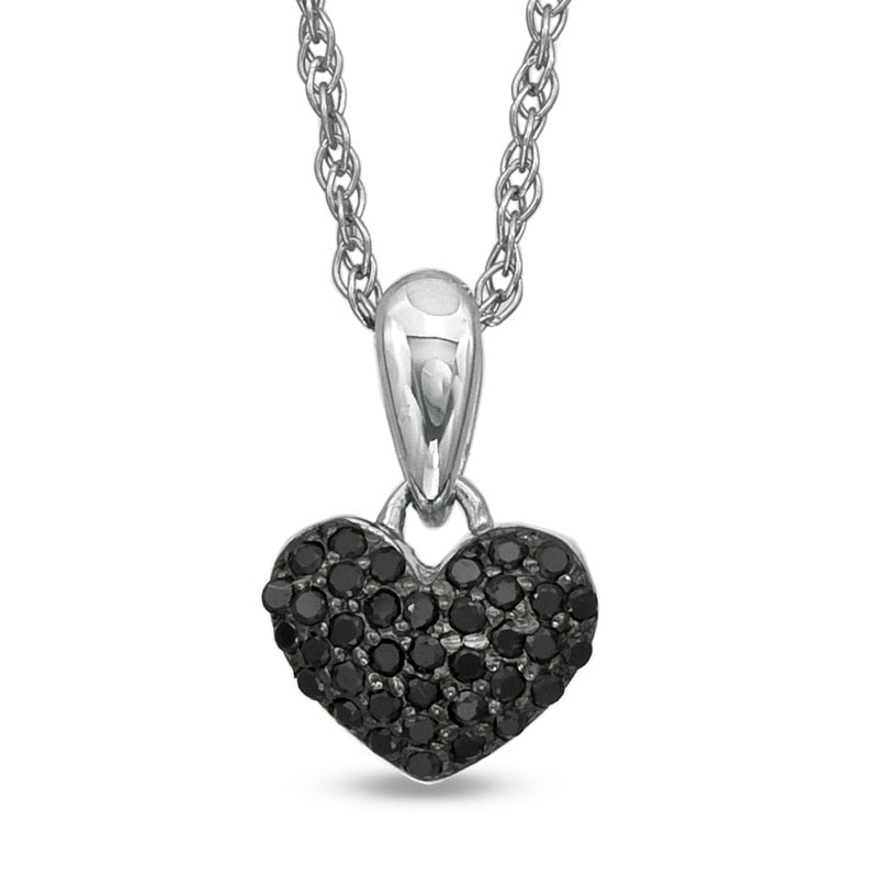 0.1 CT. T.W. Enhanced Black Natural Diamond Puffed Heart Pendant in Sterling Silver