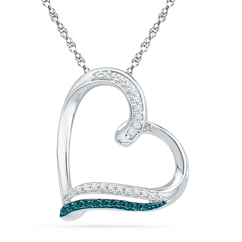 0.1 CT. T.W. Enhanced Blue and White Natural Diamond Tilted Heart Pendant in Sterling Silver