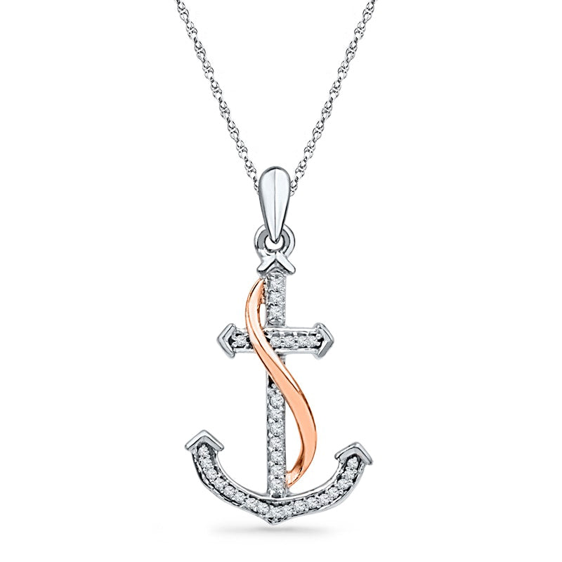 0.1 CT. T.W. Natural Diamond Anchor Pendant in Sterling Silver and 10K Rose Gold