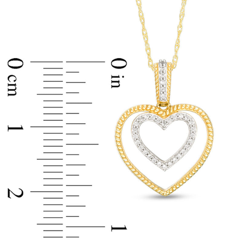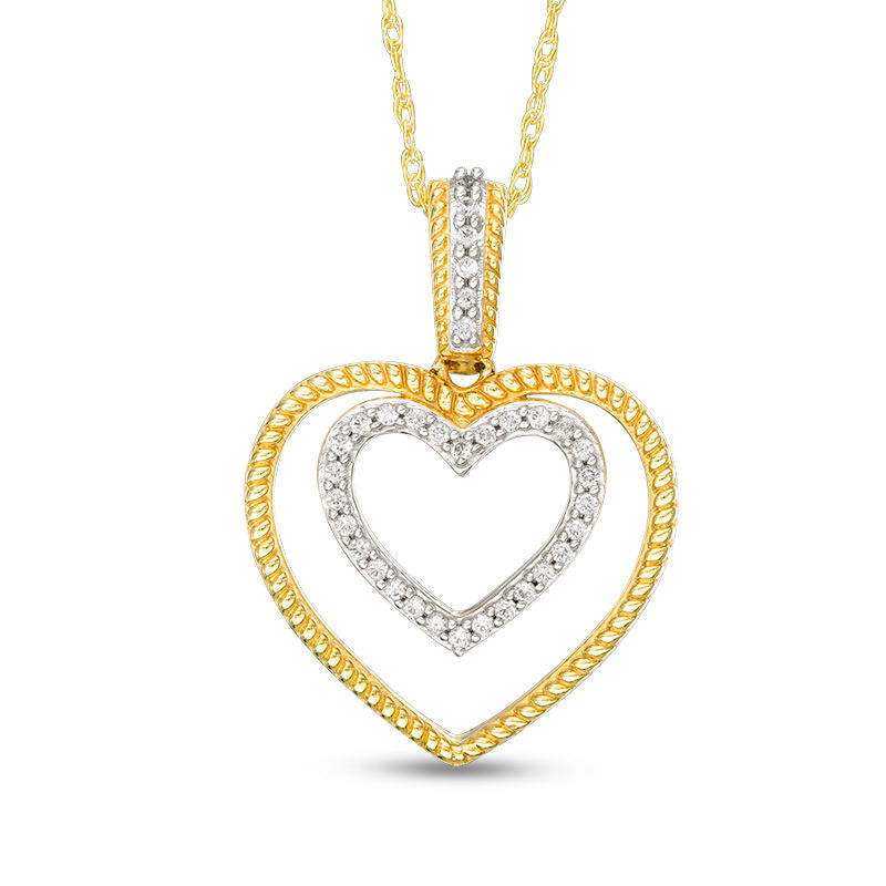 0.1 CT. T.W. Natural Diamond and Rope-Textured Double Heart Pendant in 10K Yellow Gold