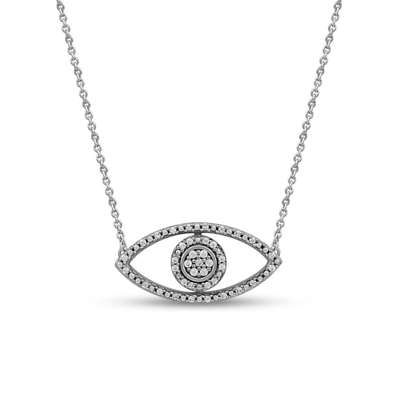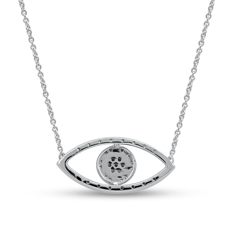 0.1 CT. T.W. Natural Diamond Beaded Evil Eye Necklace in 10K White Gold