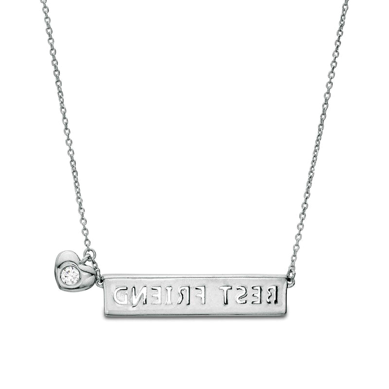 0.1 CT. T.W. Natural Diamond BEST FRIEND" Cutout with Heart Necklace in Sterling Silver"