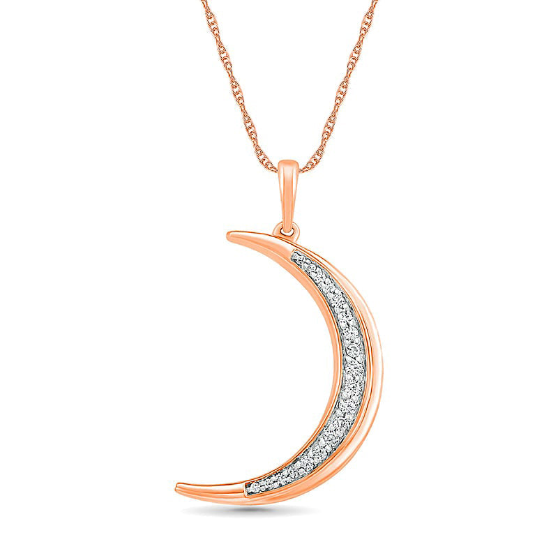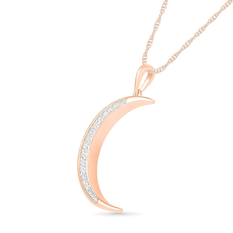0.1 CT. T.W. Natural Diamond Crescent Moon Pendant in 10K Rose Gold