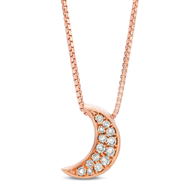 0.1 CT. T.W. Natural Diamond Crescent Moon Pendant in Sterling Silver with 18K Rose Gold Plate