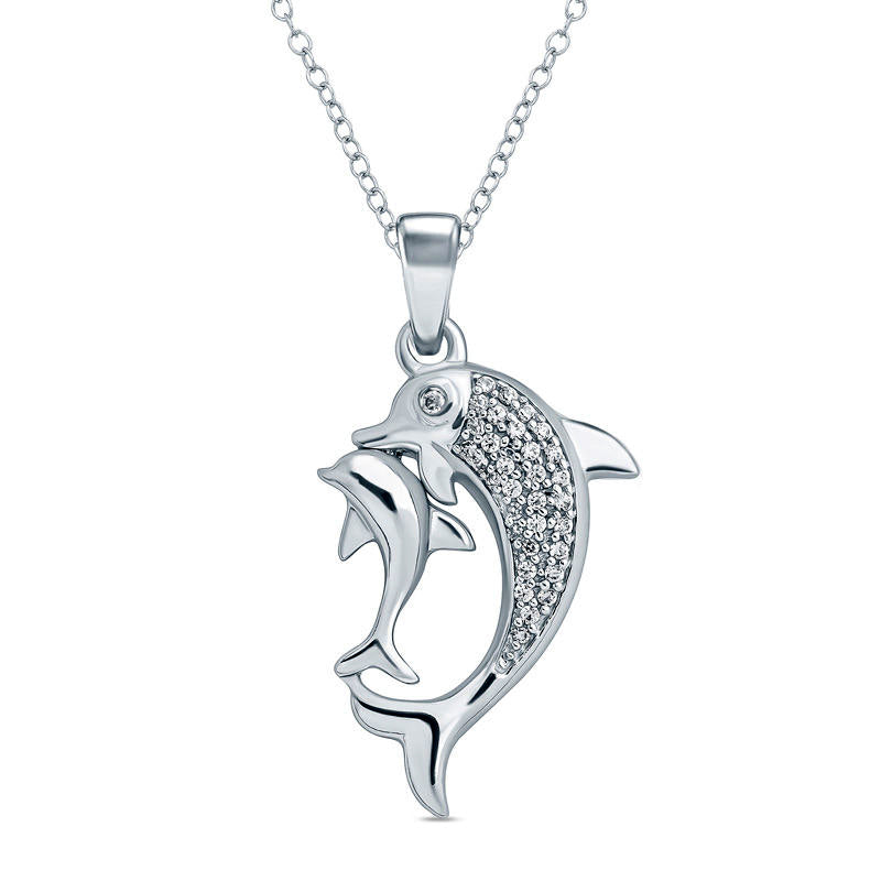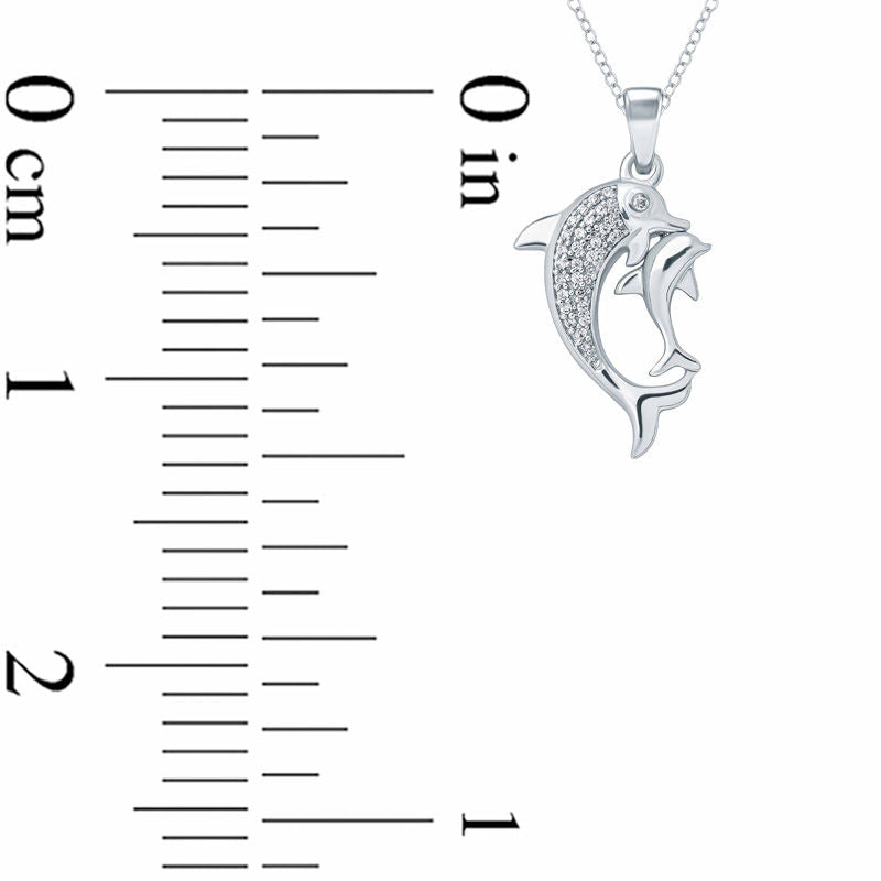 0.1 CT. T.W. Natural Diamond Dolphin and Calf Pendant in Sterling Silver