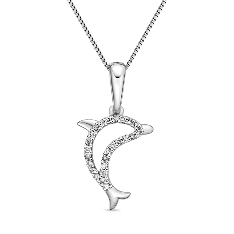 0.1 CT. T.W. Natural Diamond Dolphin Pendant in Sterling Silver