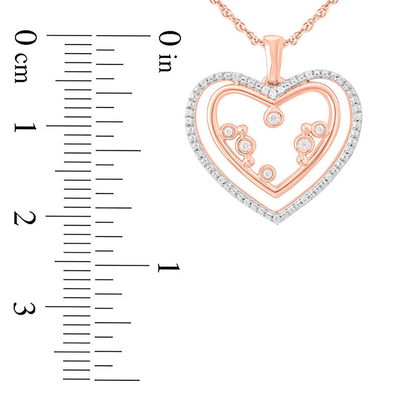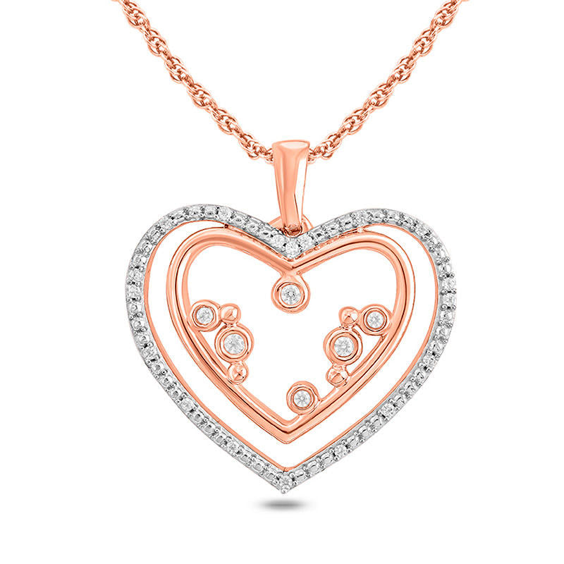 0.1 CT. T.W. Natural Diamond Double Heart Outline Pendant in 10K Rose Gold