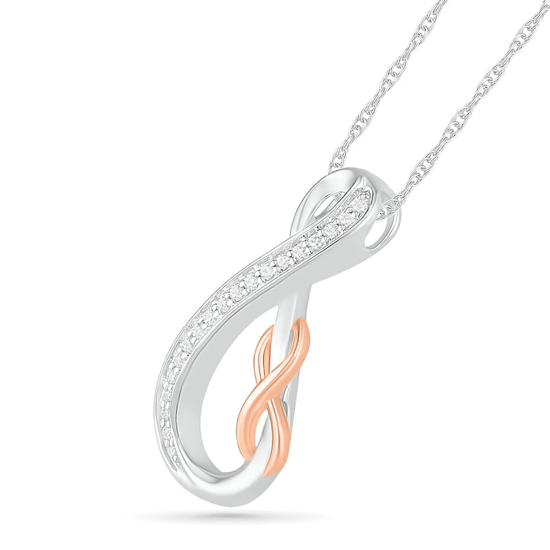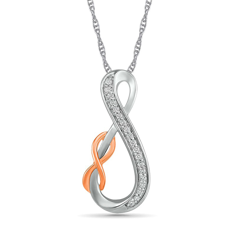 0.1 CT. T.W. Natural Diamond Double Infinity Loop Pendant in Sterling Silver and 10K Rose Gold