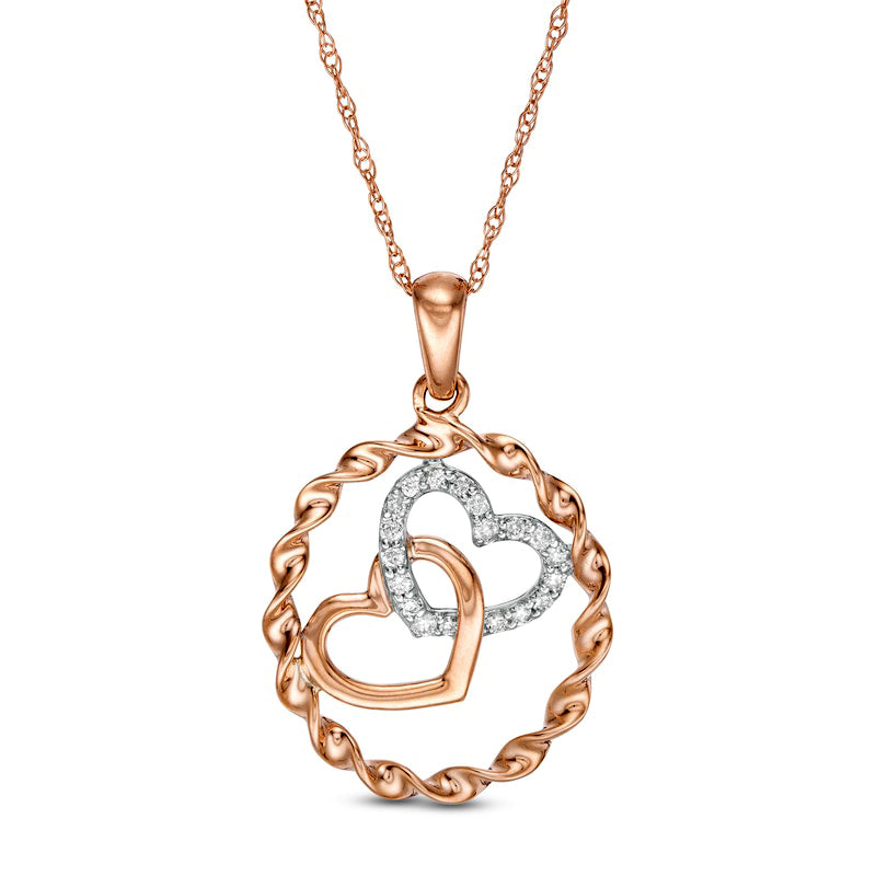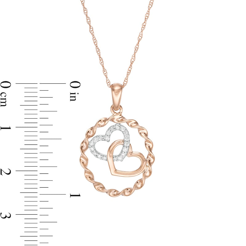 0.1 CT. T.W. Natural Diamond Double Outline Heart Twist Circle Pendant in 10K Rose Gold