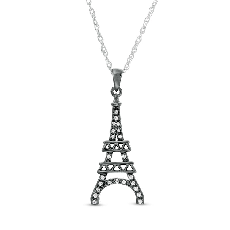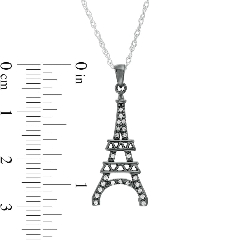 0.1 CT. T.W. Natural Diamond Eiffel Tower Pendant in Sterling Silver and Black Rhodium