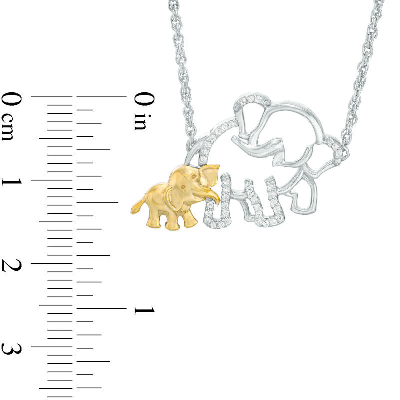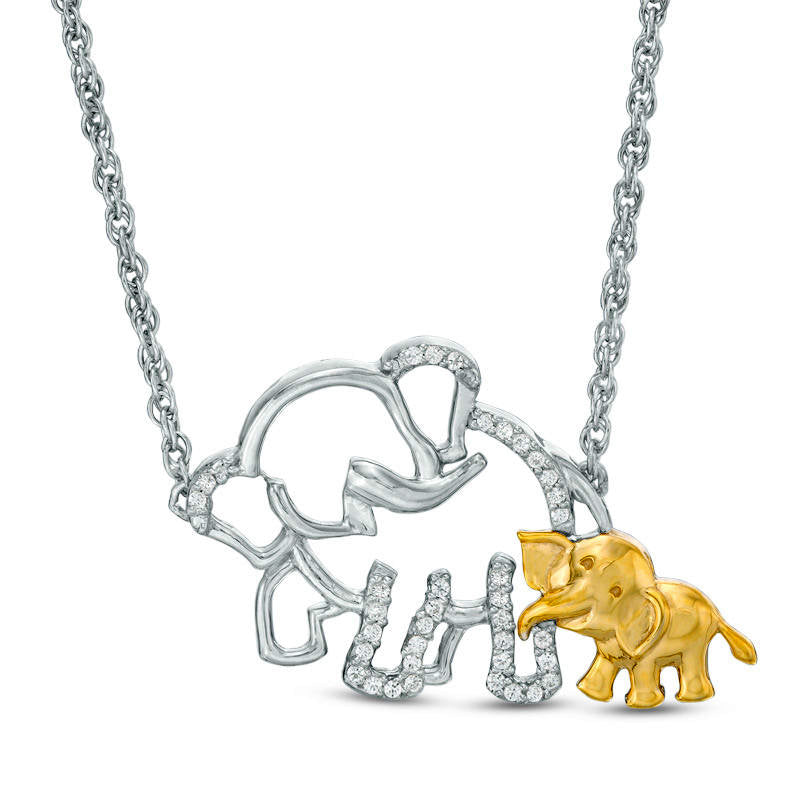 0.1 CT. T.W. Natural Diamond Elephant and Calf Necklace in Sterling Silver and 10K Yellow Gold