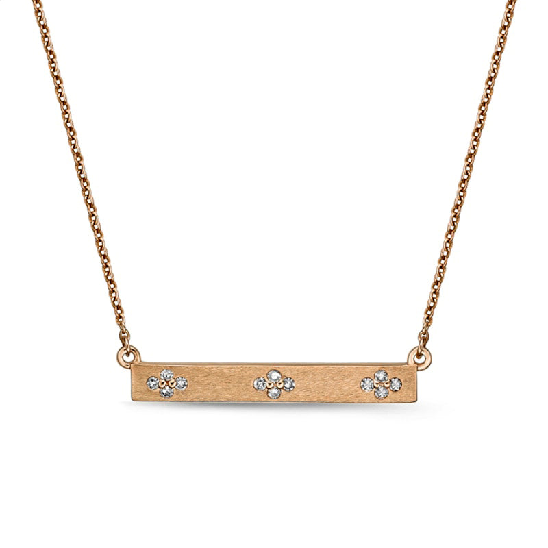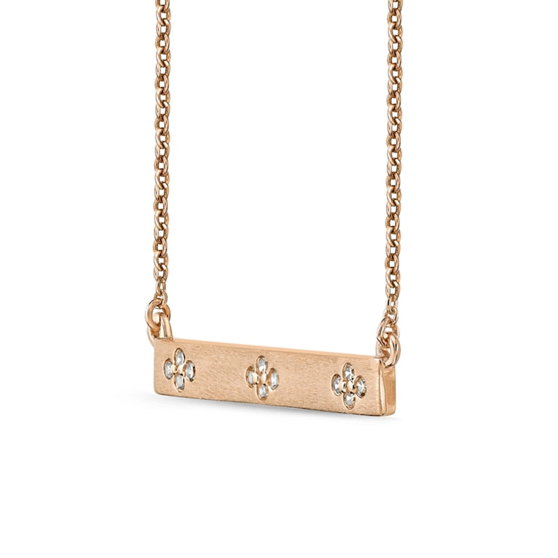 0.1 CT. T.W. Natural Diamond Flower Cluster Sideways Bar Necklace in 10K Rose Gold