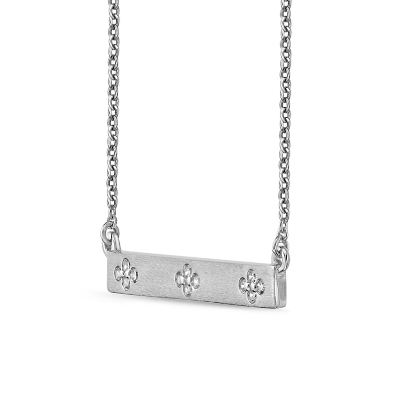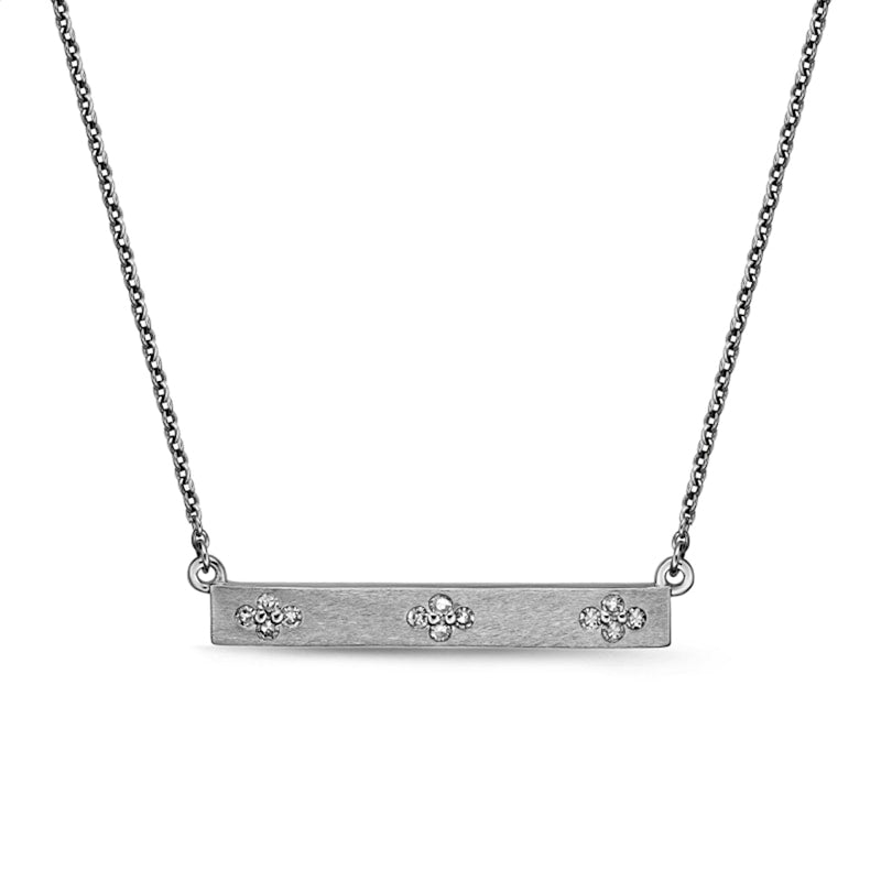 0.1 CT. T.W. Natural Diamond Flower Cluster Sideways Bar Necklace in 10K White Gold
