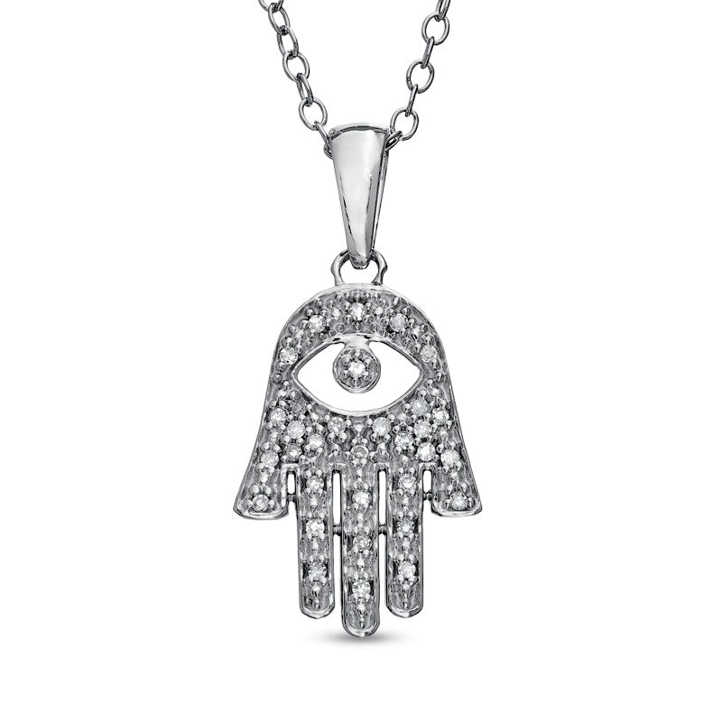 0.1 CT. T.W. Natural Diamond Hamsa with Evil Eye Pendant in Sterling Silver