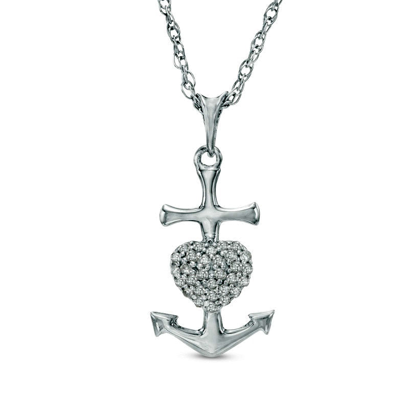 0.1 CT. T.W. Natural Diamond Heart Anchor Pendant in Sterling Silver