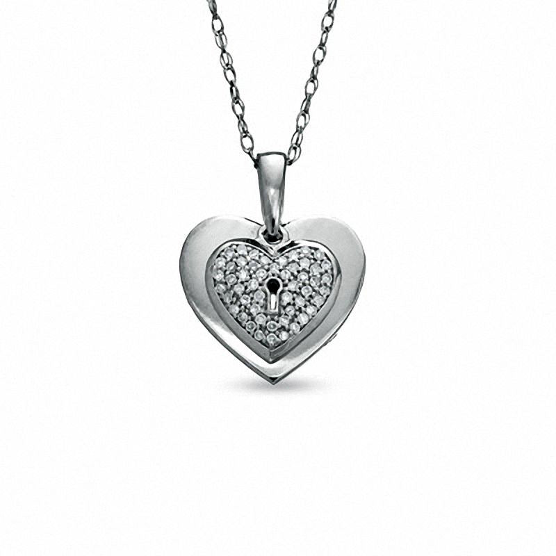 0.1 CT. T.W. Natural Diamond Heart Lock Pendant in 10K White Gold