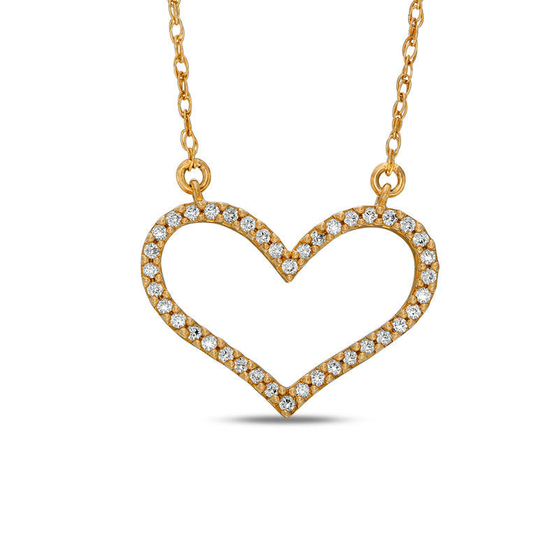 0.1 CT. T.W. Natural Diamond Heart Outline Necklace in 10K Yellow Gold