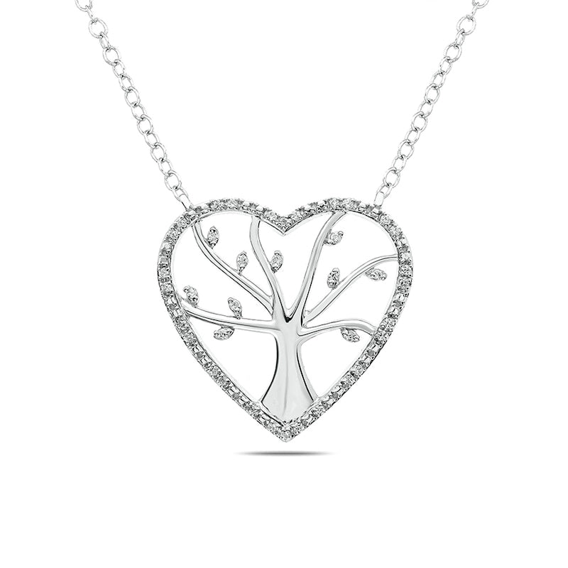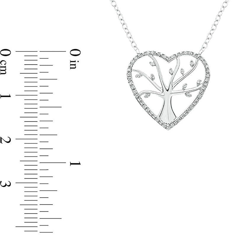 0.1 CT. T.W. Natural Diamond Heart Outline Tree of Life Necklace in Sterling Silver