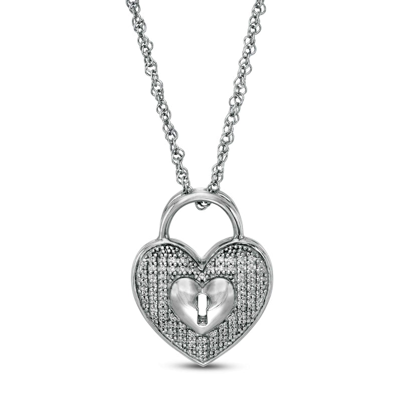 0.1 CT. T.W. Natural Diamond Heart-Shaped Lock Pendant in Sterling Silver