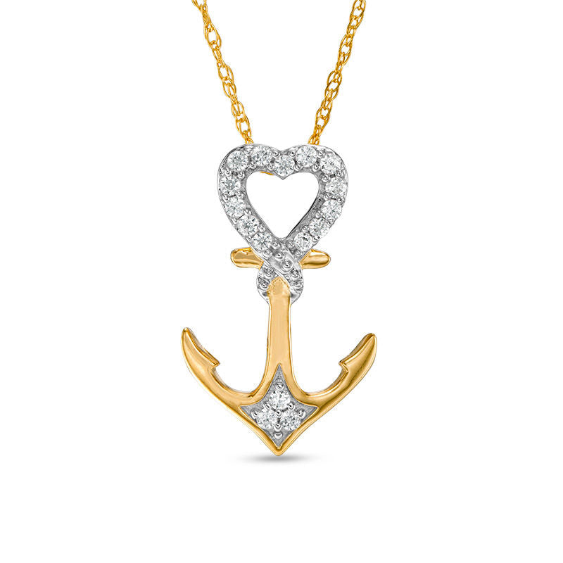 0.1 CT. T.W. Natural Diamond Heart-Top Anchor Pendant in 10K Yellow Gold