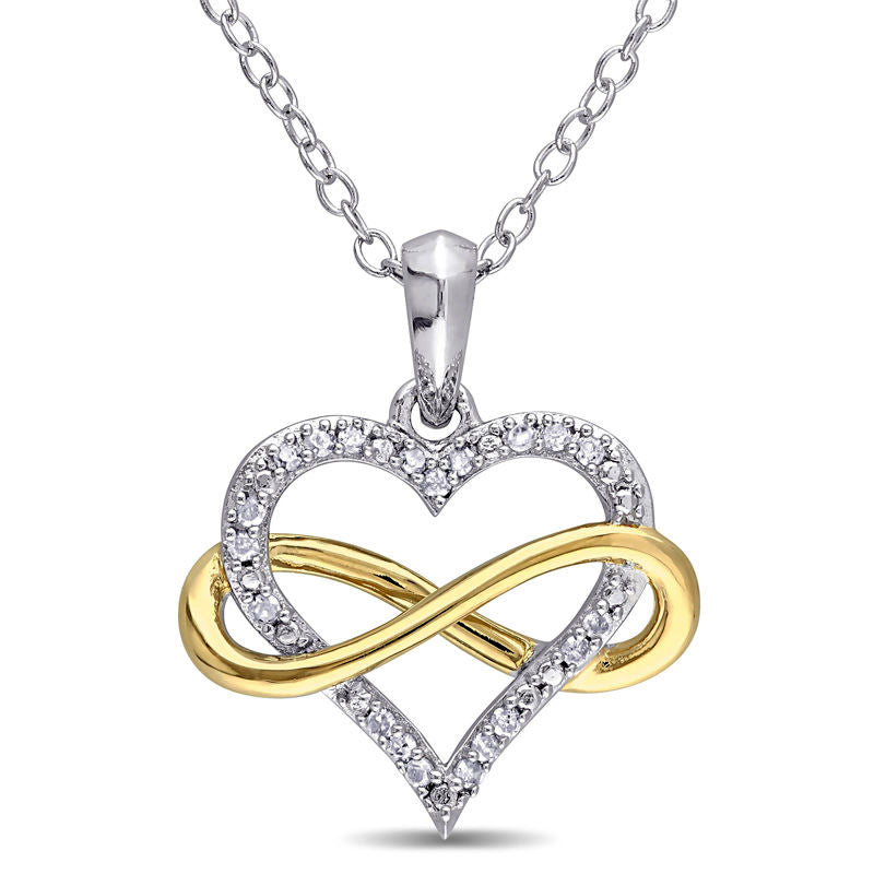 0.1 CT. T.W. Natural Diamond Infinity Heart Pendant in Sterling Silver with Yellow Rhodium